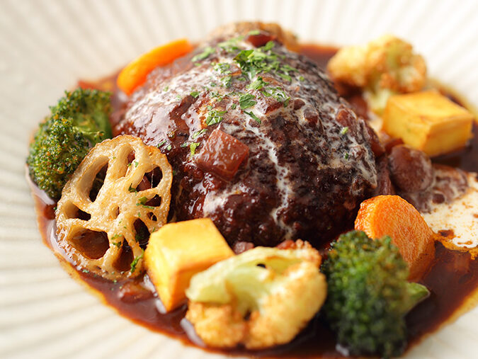 新鮮なサラダは、煮込みハンバーグと絶妙にマッチします。特に、酸味のあるドレッシングで和えたサラダは、デミグラスソースとの相性が良く、口の中をさっぱりとさせてくれます。