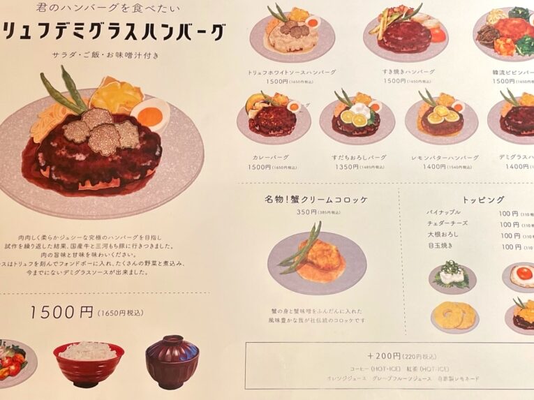 - 洋食屋 あかね: 懐かしい洋食スタイルで提供されるボリューム満点のハンバーグプレート。