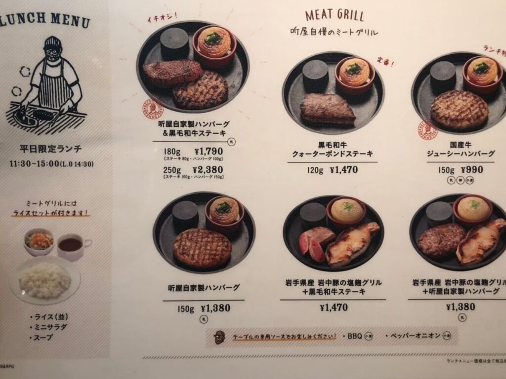 このお店は、落ち着いた照明と洗練されたインテリアが特徴です。特製のハンバーグは、柔らかい肉質とジューシーさが絶妙で、一口食べるごとに幸せを感じます。また、自家製ソースも豊富で、お好みに合わせて選ぶことができます。デートに最適なコースメニューも用意されており、カップルに人気です。
