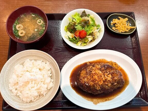 - 和風ソースのハンバーグ: 醤油ベースのソースで和テイストに仕上げています。