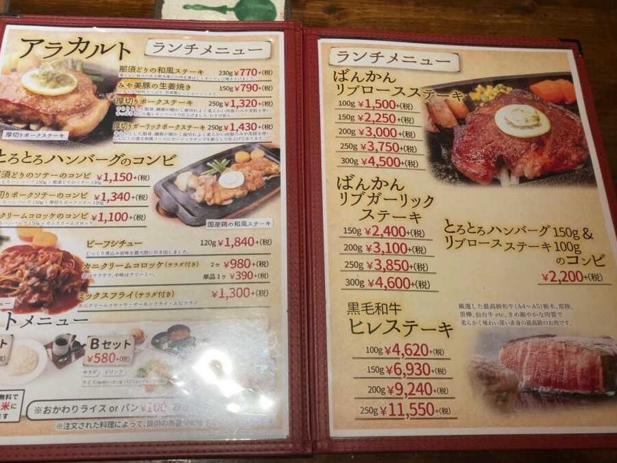 - おすすめメニュー: ステーキ風ハンバーグセット