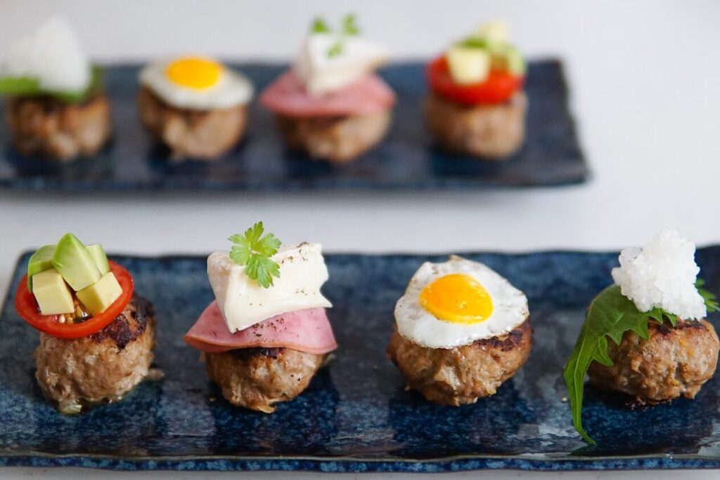 次に注目したいのはトッピングです。ハンバーグの上にチーズやオリーブ、小さく切った野菜を乗せることで、一層華やかになります。例えば: