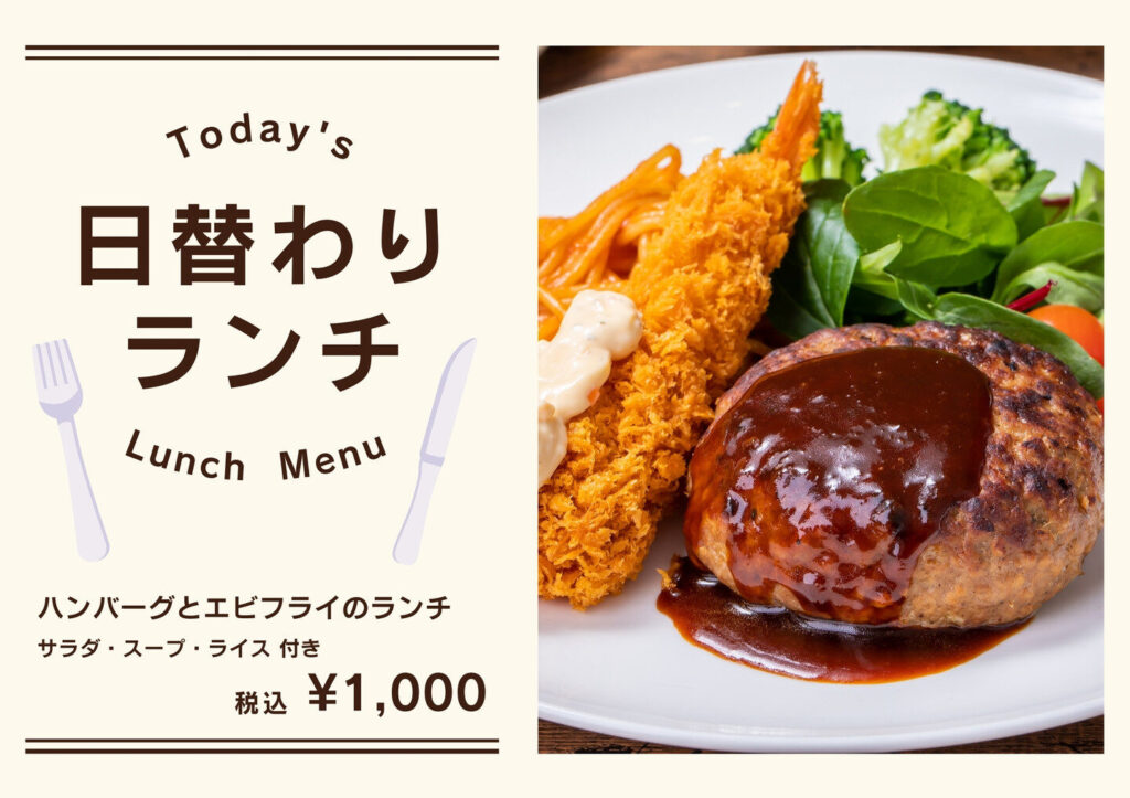 色彩豊かなハンバーグ画像は、その美味しさを引き立てます。そして構図にも注意しましょう。背景が整理されていることや焦点となる部分が明確だと、更に印象深いビジュアルになります。これらは視覚的な訴求力を強める要因となりますので心掛けてください。