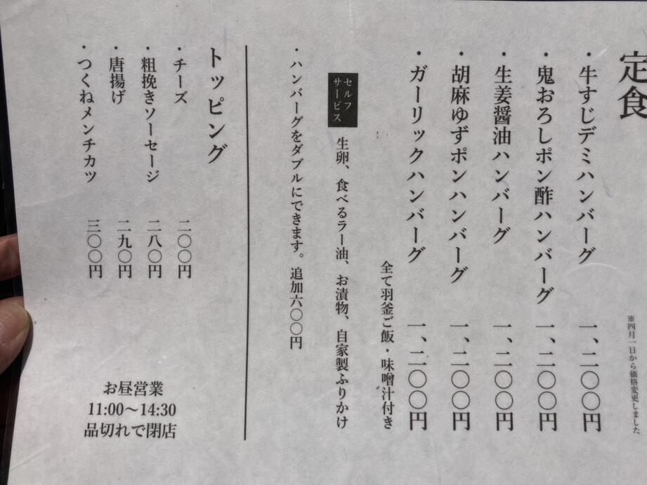 - ハンバーグデー: 毎月第1水曜日には、全てのハンバーグメニューが20%オフになります。この日は多くのお客様で賑わうため、早めの来店がおすすめです。