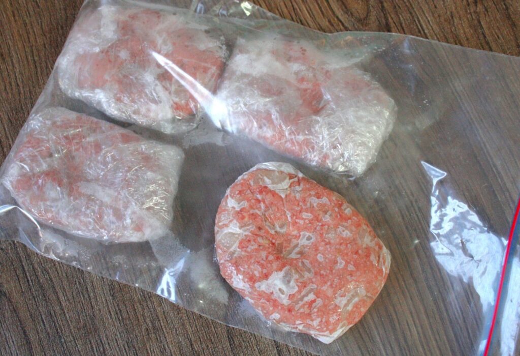 - 密封袋利用: ハンバーグを密封袋に入れ、水漏れしないようしっかり閉じます。