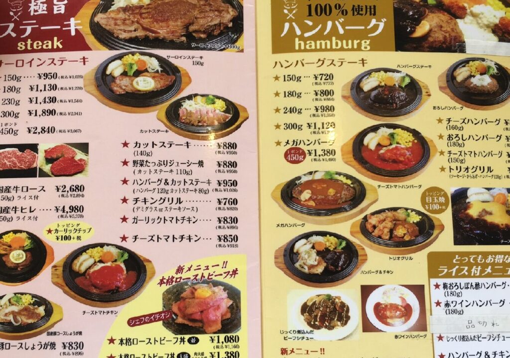 こちらではステーキとともに多様な種類のハンバーグを提供しています。「トマトソースパスタ付きハンバーグ」が特に人気で、ボリューム満点なのにも関わらず、お値段はリーズナブルです。