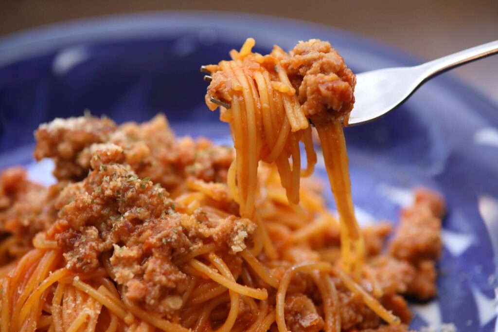 このアレンジも簡単です。通常通りボロネーゼソースを作った後、お好みに応じて赤唐辛子フレークとタバスコを加えてください。一味違った風味が楽しめます。