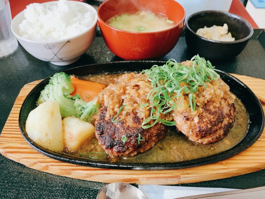 新鮮な地元産の牛肉を使用し、ジューシーで柔らかいハンバーグが魅力。ランチセットではサラダやスープも付いてお得です。
