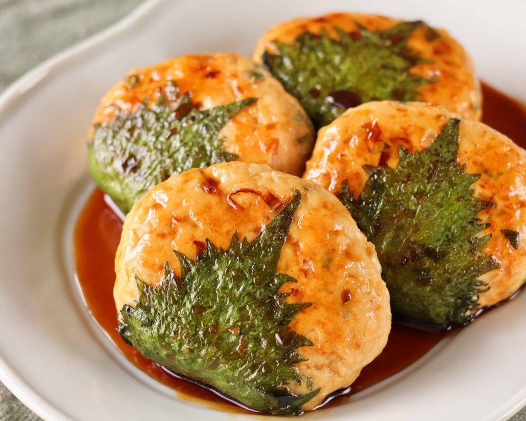 - 手順: ボウルに鶏ひき肉、大葉のみじん切り、刻んだ玉ねぎを入れ混ぜ合わせます。パン粉と卵を加えよくこね、小さなハンバーグ型に成形して焼きます。