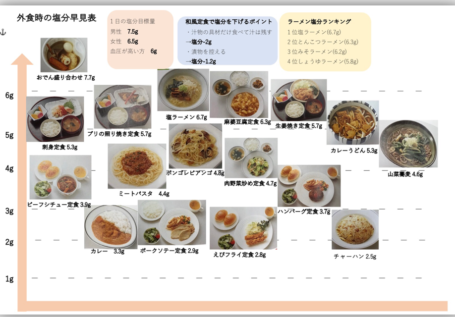 - メニュー選び: 塩分ランキングを参考にし、高塩メニューは避ける。
