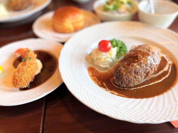 古民家風の落ち着いた雰囲気の中で江南ハンバーグを楽しむことができます。このレストランでは、「和風おろしソース」でいただくハンバーグがおすすめで、あっさりとした味わいが特徴的です。さらに、手作りデザートも充実しているため、食後まで満足感があります。