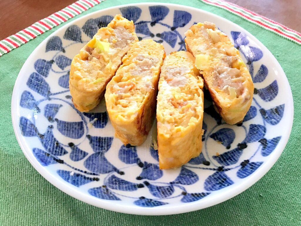 残りのハンバーグをご飯と混ぜてケチャップライスにし、その上からふんわり卵で包むことでボリューム満点のオムライスになります。一皿で満足感があります。