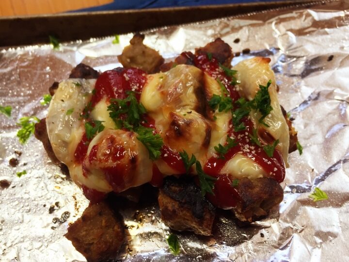 - ピザ用チーズ:崩したハンバーグをトーストしたパンに乗せ、その上からチーズをかけてオーブンで焼く。